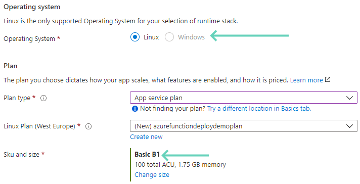 This is quite an expense, especially since having a good machine learning model is of no use if you don’t have it deployed somewhere where it can be accessed. Fortunately, there are other deployment options as well, such as deploying your machine learning models to Azure Functions. Using Azure Functions you can deploy the ML model to a Linux App Service, which at the lowest Basic performance tier costs a fraction of the cheapest AKS option: At the time of writing, you can get a Basic Linux App Service in the West Europe region for 11 euros a month! Now that’s something I’d call affordable.